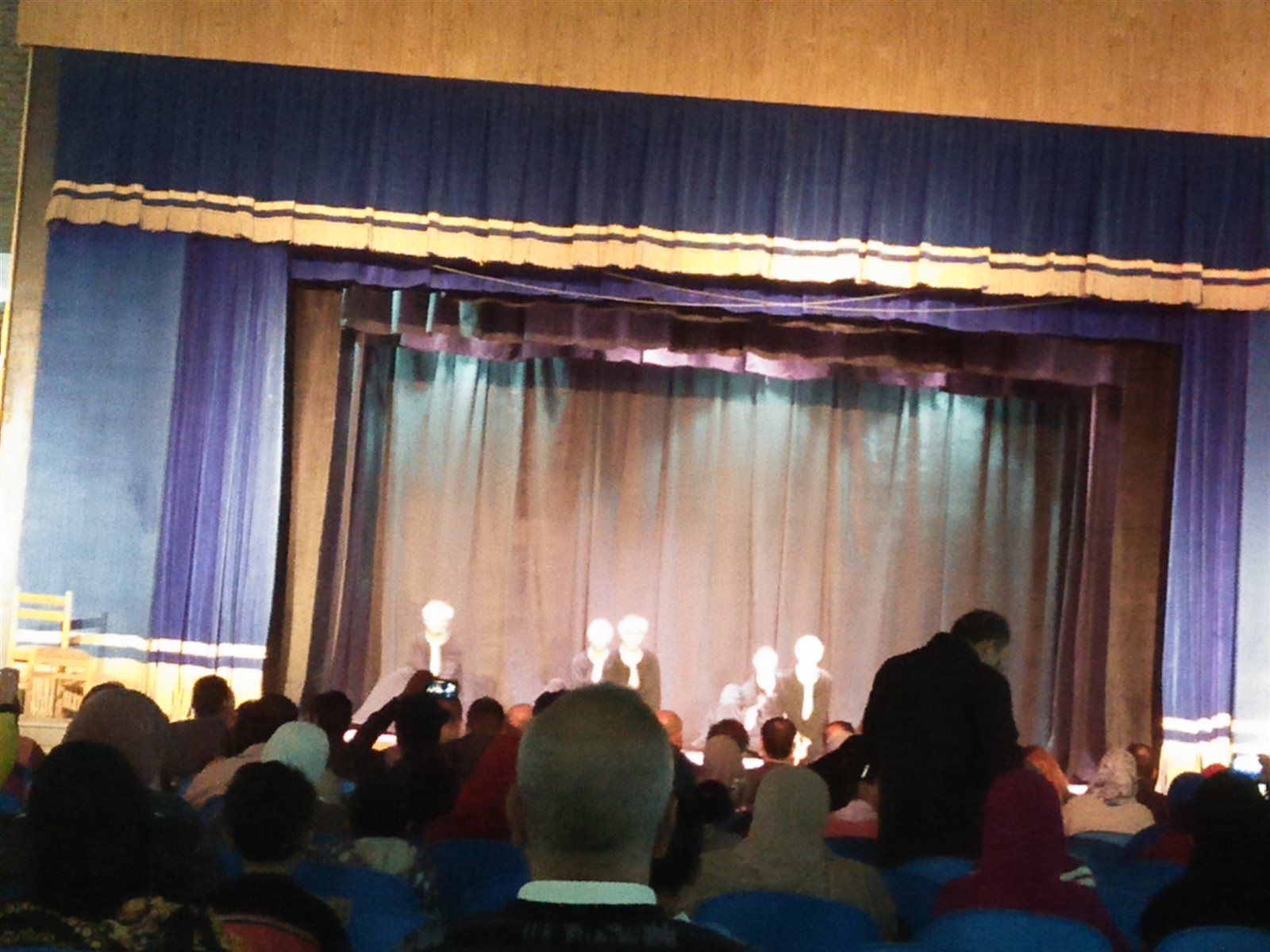 وامتلأالمسرح بالجمهور الذي توافد على، القصر لحضور الحفل، في صورة حضارية، يملأها الأمل والنور.