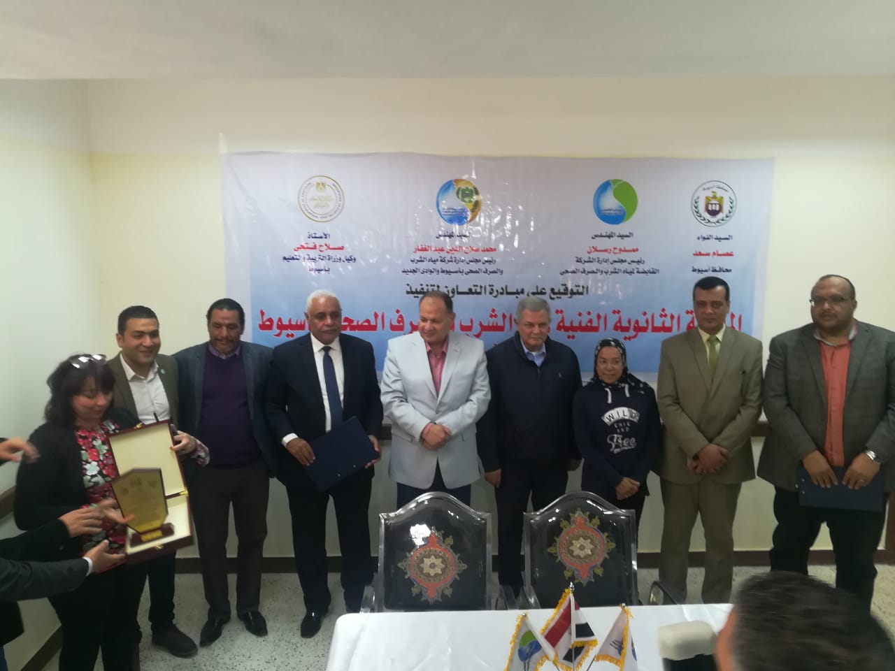 اجتمع اللواء عصام سعد محافظ أسيوط، والاستاذ صلاح فتحى بدوى، وكيل وزارة التربية والتعليم، والمهندس ممدوح رسلان رئيس مجلس إدارة الشركة القابضة للمياه، والمهندس محمد صلاح رئيس شركة مياه الشرب والصرف الصحي بأسيوط، لتوقيع مبادرة برتوكول التعاون المشترك بين شركة المياه، ووزارة التربية والتعليم لإعلان أول مدرسة فنية للمياه بمحافظة أسيوط، مجهزة لتقديم محتوى تعليمى متخصص فى مجال مياه الشرب والصرف الصحى، وتخريج فنيين على مستوٍ عالٍ من المهارة والتدريب.
