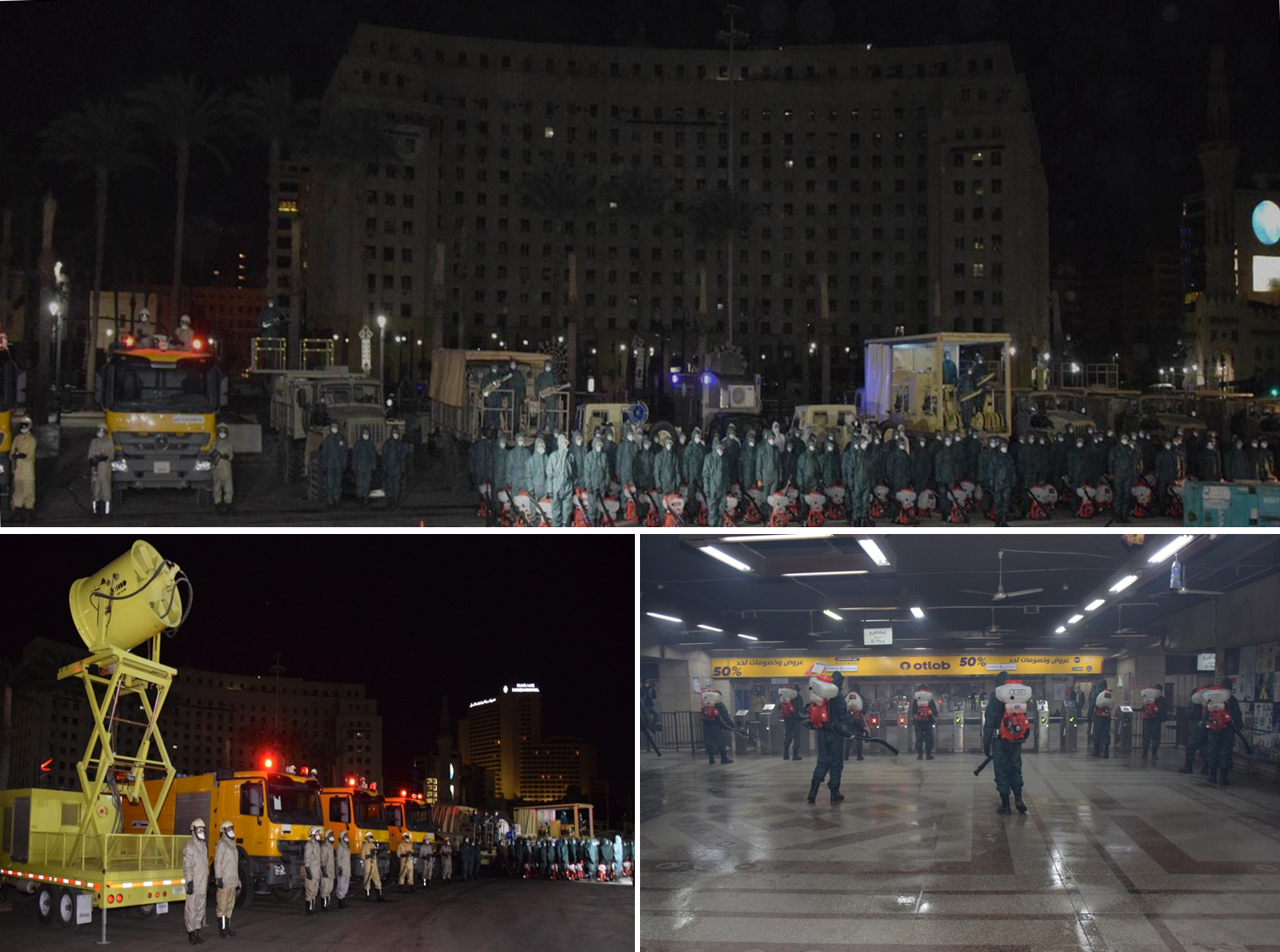 وأصدرت القيادة العامة للقوات المسلحة، الأوامر للإدارات التخصصية المعنية بتنفيذ عمليات التطهير والتعقيم الوقائى لمجمع التحرير وعدد من الميادين والشوارع الرئيسية والمنشآت والمرافق الحيوية المحيطة بميدانالتحرير التى تتردد عليها أعداد كبيرة من المواطنين بشكل مستمر.