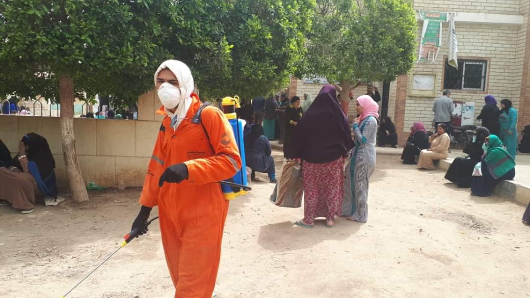 وقام مسئولو الوحدة المحلية بمعاونة الشرطة بتنظيم تواجد المواطنين وترك مسافة لا تقل عن متر بين كل مواطن واخر أمام الشباك حفاظا على الجميع.