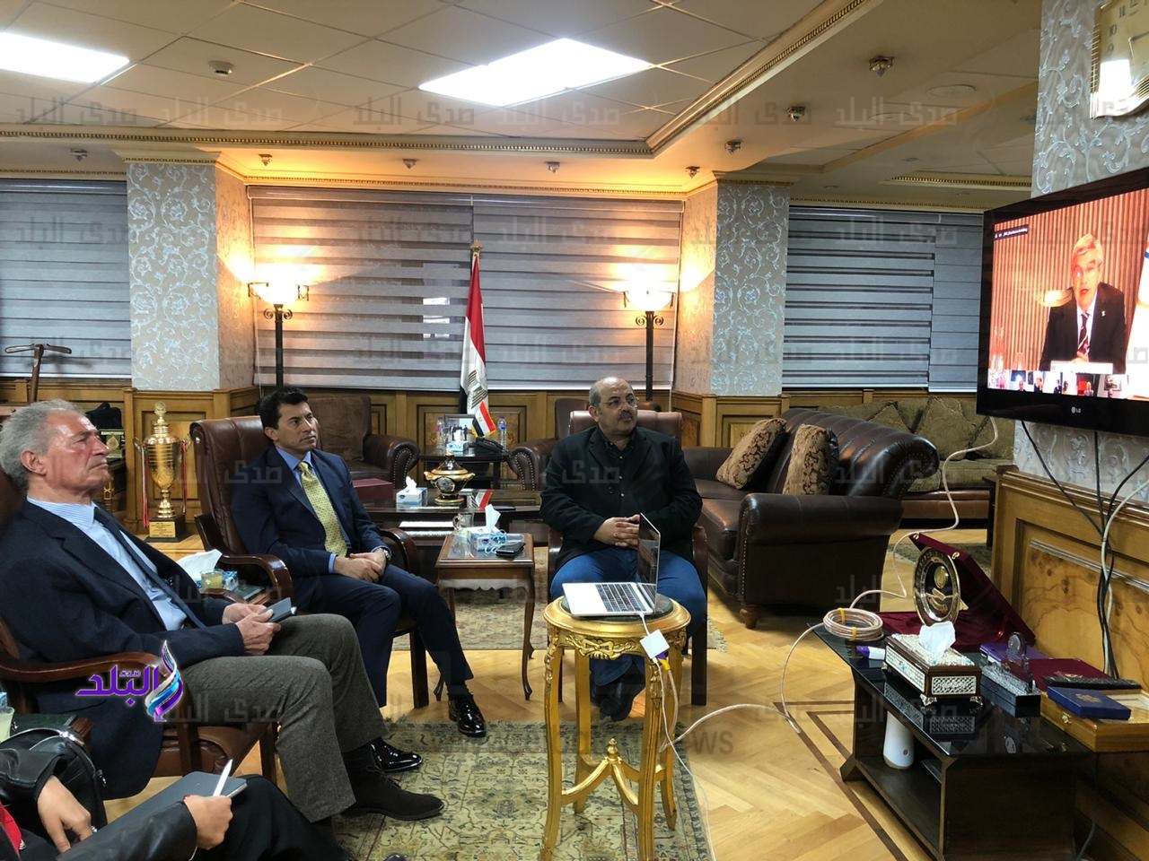 فيديو كونفرانس.. وزير الرياضة يشهد اجتماعا مع رؤساء الاتحادات الرياضية الدولية