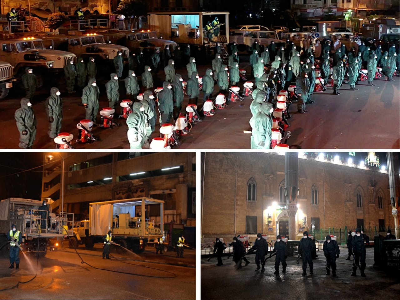ينشر موقع صدى البلد الإخباري فيديو قيام للإدارات التخصصية التابعة للقوات المسلحة بتنفيذ عمليات التطهير والتعقيم الوقائى لكل من ميدان العتبة وحى الموسكى ومنطقة الأسواق التجارية وهيئة البريد والمسرح القومى وميدان وجراج الأوبرا وشارعى عبد العزيز والجيش والشوارع الجانبية المحيطة التى يتردد عليها أعداد كبيرة من المواطنين بشكل مستمر للوقاية من فيروس كورونا، فضلًا عن تطهير وتعقيم شارع الأزهر وميدان الحسين والمنطقة المحيطة بمسجد الإمام الحسين رضى الله عنه، وذلك أثناء التوقيت الذى يتم فيه تطبيق حظر تجول المواطنين لضمان تنفيذ أعمال التطهير لأكبر مساحة ممكنة بكفاءة عالية وبمعدلات أزمنة قياسية.