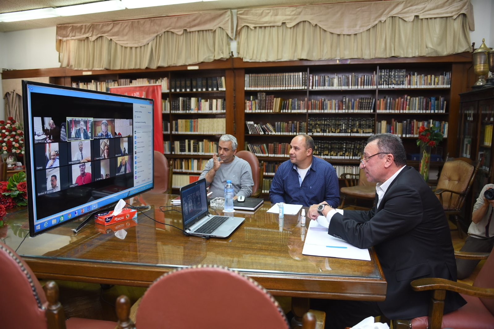 وتواجد محمود الخطيب برفقة العميد محمد مرجان، المدير التنفيذي، في مقر النادي بالجزيرة، وقامت إدارة تكنولوجيا المعلومات بتجهيز شاشة في غرفة مجلس الإدارة، ليتواصل من خلالها رئيس النادي مع أعضاء مجلس الإدارة عن بُعد، في سابقة تعد الأولى من نوعها في تاريخ اجتماعات مجلس إدارة النادي.
