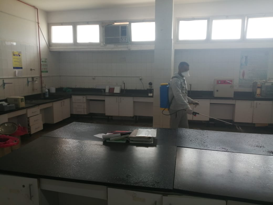 كما قامت مديرية الطب البيطريبالتنسيق والاشتراك مع مجالس المدن والأحياء بتنفيذ أعمال التطهير والتعقيم لمبانى المنشآت الحكومية والعامة بجميع مراكز ومدن المحافظة بالإضافة إلى تطهير وتعقيم مبني ديوان عام المديرية والإدارات والوحدات البيطرية ومراكز تحصين الدواجن والمجازر الحكومية، حيث شملت أعمال التطهير والتعقيم رش المباني من الخارج والمكاتب والأثاثات والطرقات والحمامات، بالإضافة إلى نشر الرسائل التوعوية التثقيفية للعاملين بالمديرية للوقاية من الإصابة بفيروس كورونا المستجد وحفاظا على صحة وسلامة جميع العاملين والمترددين من متلقى الخدمة.