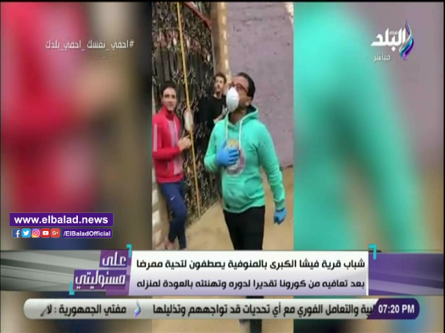 عرض الإعلامي أحمد موسى، فيديو لشباب قرية فيشا الكبرى بالمنوفية وهم يصطفون لتحية ممرض بعد تعافيه من كورونا تقديرا لدوره وما قام به من عزل نفسه خشية عدوي أهله.