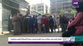 شهد مكتب بريد الهرم زحاما كبيرا من المواطنين لصرف منحة العمالة غير المنتظمة .