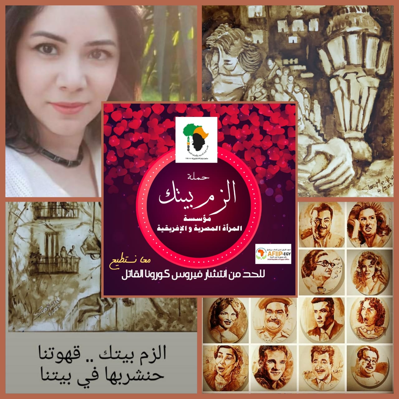 وقال اللواء هشام فرج، المستشار الأمنى للمؤسسة والمنسق العام للحملة، إن دعم الفنانين التشكيليين للحملة يؤكد على الدور الهام للفن التشكيلى فى التأثير الإيحابى على شريحة كبيرة من أفراد المجتمع، خاصة وأن الفنانة سارة تخصصت فى نوع مميز من أنواع الفن التشكيلى ألا وهو الرسم بالقهوة، وتشارك بمجموعة من اللوحات تحت شعار "الزم بيتك.. قهوتنا هنشربها فى بيتنا" .