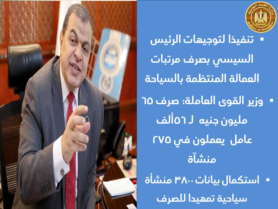 وأوضح وزير القوى العاملة، أن إجمالي أعداد المتقدمين بقطاع السياحة للصندوق لصرف الإعانات المتضررين من وباء كورونا وصل حتى الآن 3800 منشاة، وبعد صرف الدفعتين يتبقى 3525 منشأة سياحية جاري استكمال بياناتها تمهيدا للصرف.