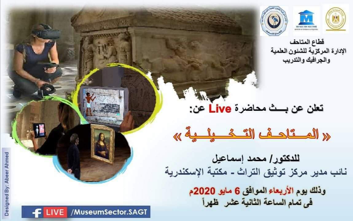 تطلق الإدارة المركزية للشئون العلمية والجرافيك والتدريب بالمجلس الأعليللآثار يوم الأربعاء الموافق ٦ مايو ٢٠٢٠، محاضرة جديدة بعنوان "المتاحف التخيلية " من خلال البث المباشر على موقع التواصل الاجتماعي فيسبوك.