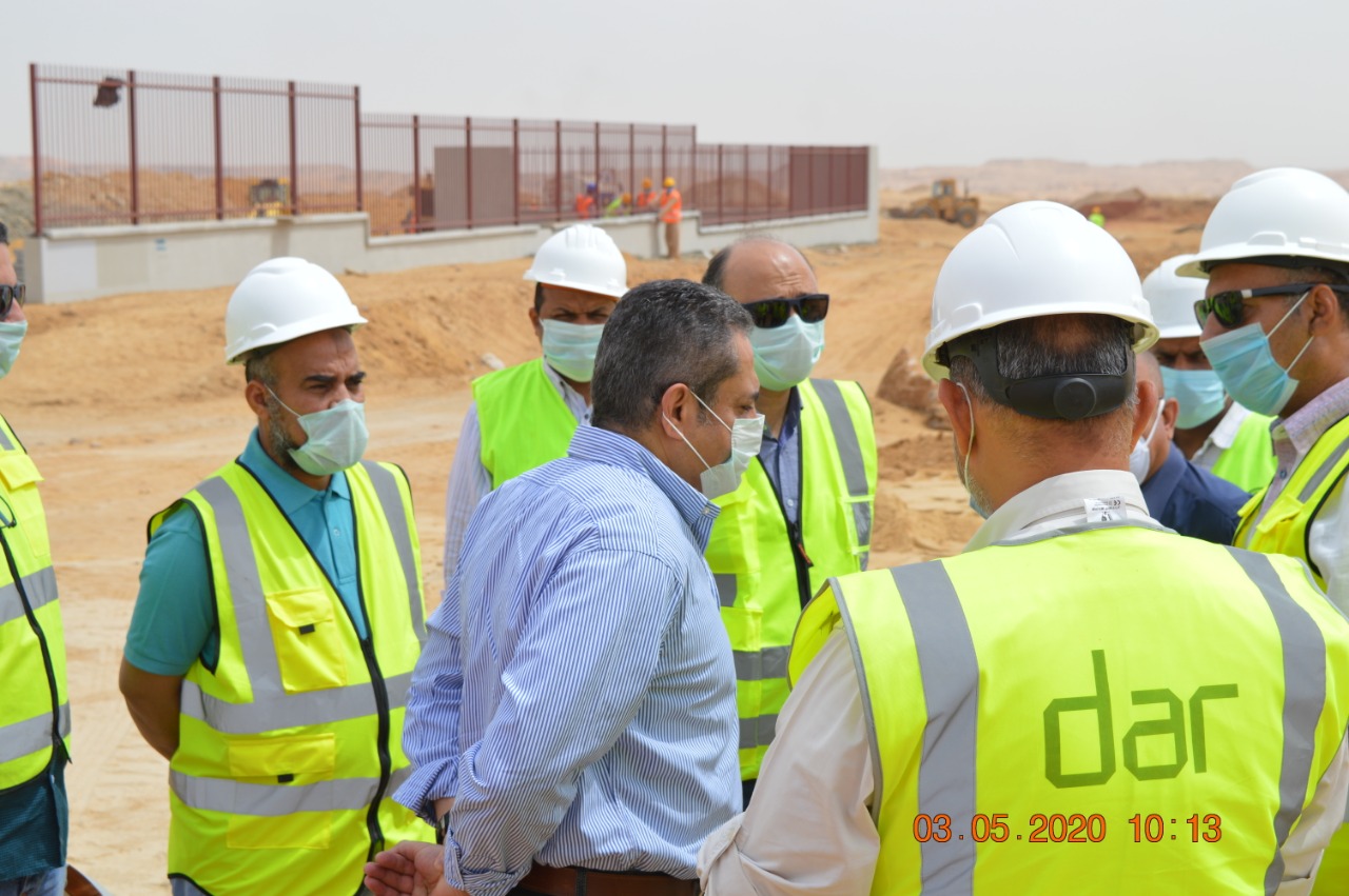 واطمأن نائب وزير الإسكان للمشروعات القومية، على الالتزام بالإجراءات الاحترازية والوقائية، والاحتياطات اللازمة لضمان سلامة وصحة العاملين بالمشروع، وحمايتهم من الإصابة بفيروس كورونا المستجد، مشددًا على الالتزام بالتعليمات الصحية بجميع مواقع ومكاتب العمل، وأماكن مبيت العمال.