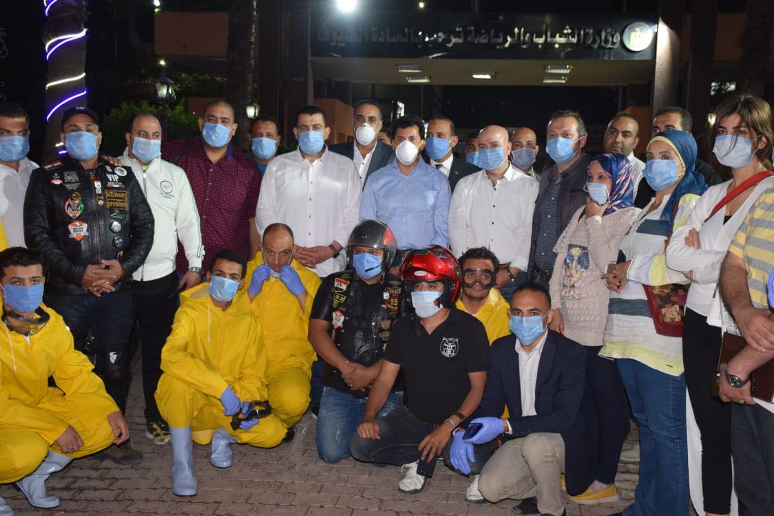 أطلق الدكتور أشرف صبحي وزير الشباب والرياضة، مساء اليوم الجمعة، من أمام ديوان عام الوزارة إشارة بدء مبادرة تطهير وتعقيم مواقف المواصلات العامة التى تنفذها الوزارة بمحافظة القاهرة على مدار اليوم وغدا بالتعاون مع الاتحاد المصري للدراجات النارية وجمعية العالم بيتي.