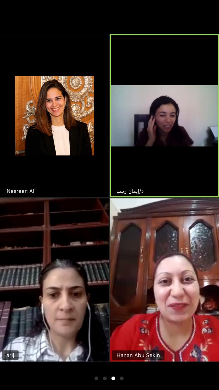 كما تضمن الاجتماع مراجعة كل من الدليل التدريبي ( المرأة والامن والسلام) و (المرأة والبيئة ) و ( المرأة والفساد) ، و ناقش الاجتماع أيضا عدة اقتراحات خاصة بالدليل التدريبي ( المرأة والانتخابات ) في ظل فيروس كورونا .