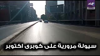 شهد كوبري أكتوبر سيولة مرورية تامة صباح أول أيام عيد الفطر المبارك بالاضافة إلى هدوء الحركة في شوارع بوسط القاهرة وميدان التحرير التزاما بتعليمات وزارة الصحة لتجنب انتشار فيروس كورونا .