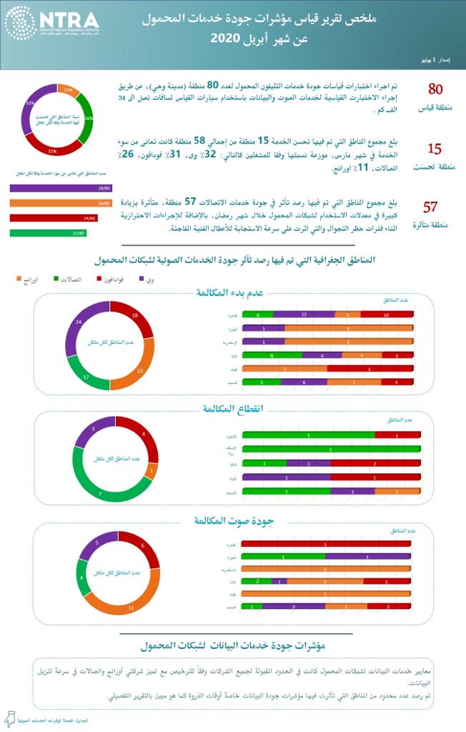 أصدر اليوم المركز القومي لمراقبة جودة خدمات الاتصالات التابع للجهاز القومي تقريره لنتائج قياسات شهر أبريل لجودة خدمات الصوت والانترنت المقدمة من شركات الاتصالات العاملة في مصر