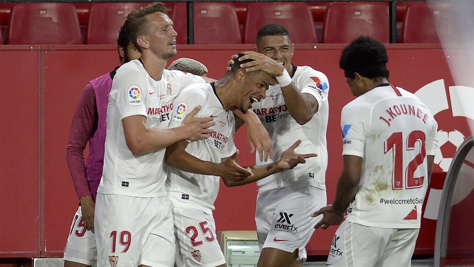 ونجح أوكامبوس في إحراز الهدف الأول لإشبيلية في المباراة، والأول في الليجا منذ أزمة فيروس كورونا المستجد.