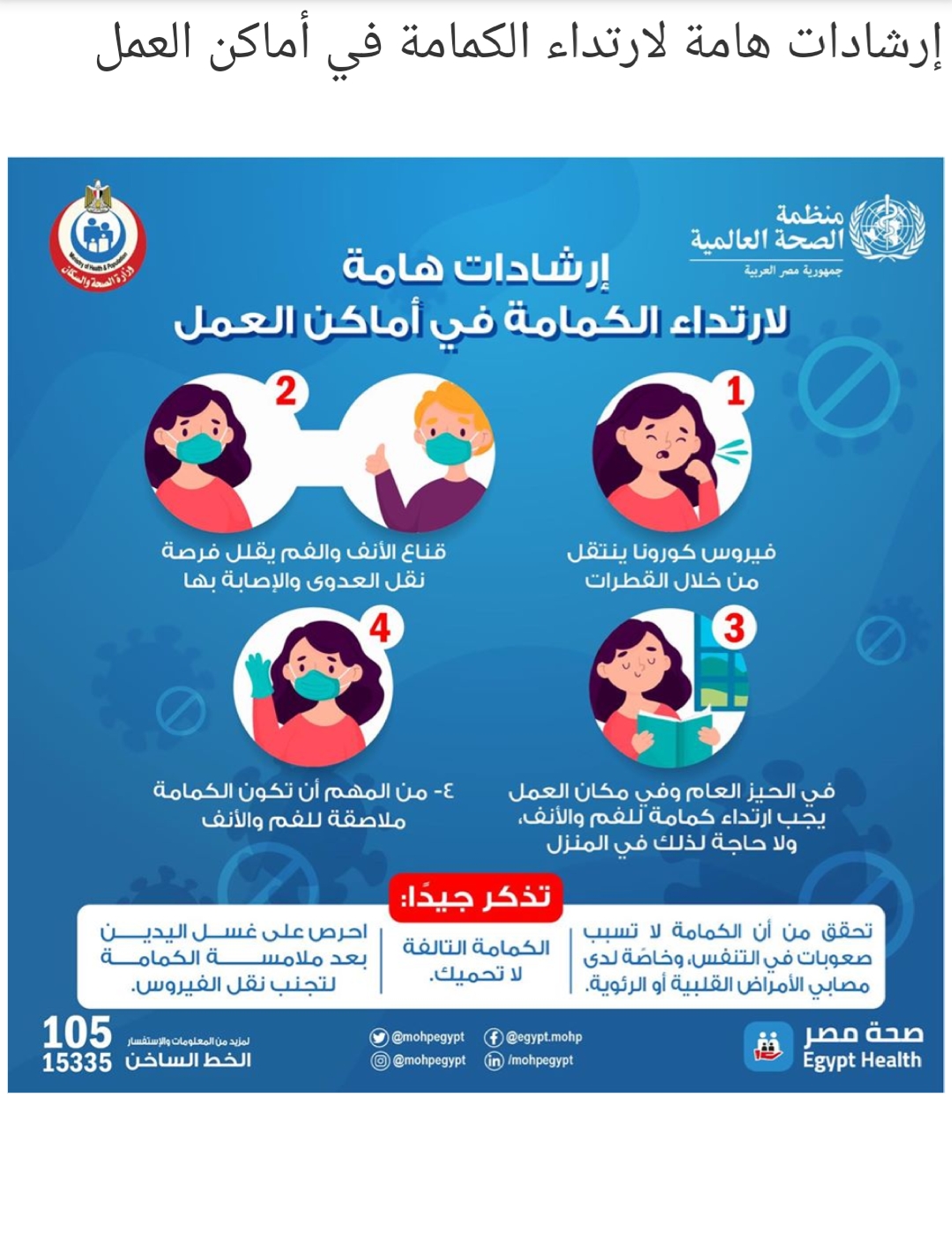 احرص على غسل اليدين بعد ملامس الكمامة التجنب نقل الفيروس.