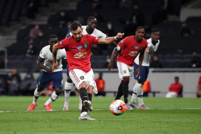 وسجل البرتغالي برونو فيرنانديز ركلة الجزاء للشياطين الحمر بنجاح في الدقيقة 82، بعدما سدد الكرة على يمين هوجو لوريس حارس مرمى توتنهام، جاعلًا النتيجة 1-1.