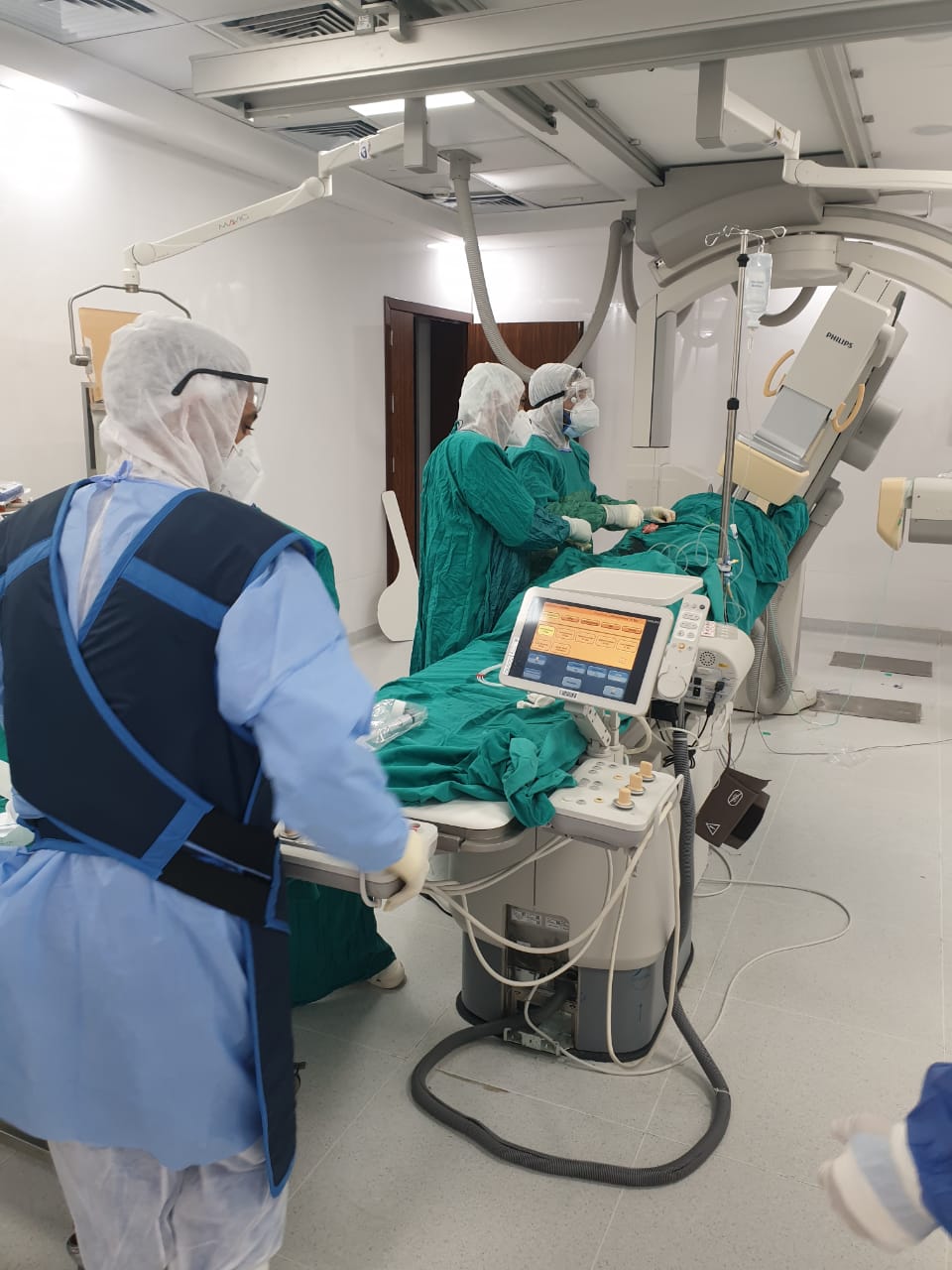 وتابع بيان الهيئة أنه تم عمل قسطرة علاجية عاجلة للحالة نظرًا لتوقف قلب المريضة فيما تم عمل الإنعاش القلبي والرئوي مع تركيب دعامة دوائية مما أدى إلى تحسن ملحوظ في حالة المريضة، وذلك تحت إشراف استشاري جراحة القلب الدكتور محمد علم الدين وفريقه الطبي الذي ضم الاخصائيين د.محمود الكتاتني، و د.معتز سلامة بالإضافة إلى طاقم التمريض م.كوكب فتحي، م.سمر أحمد وفني الأشعة أ.محمد السيد, وتم إجراء العملية مع أخذ كافة التدابير الوقائية التي من شأنها حماية الأطقم الطبية من امكانية انتقال العدوى من المريضة الذي لم تمنع أصابتها بفيروس كورونا من تلقيها العلاج وفقا لأعلى الممارسات الطبية.