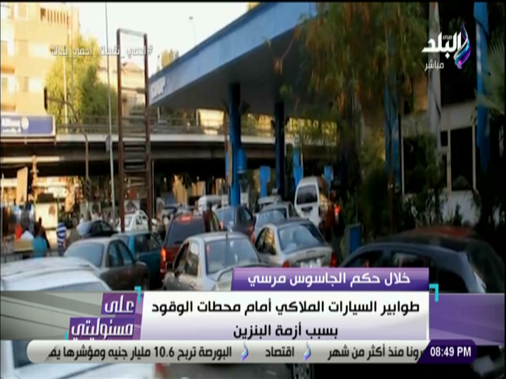 وأضاف الإعلامي أحمد موسى في برنامجه " على مسئوليتي " المذاع على قناة " صدى البلد"، :" طوابير السيارات كانت تصطف أمام محطات البنزين بسبب أزمة البنزين".