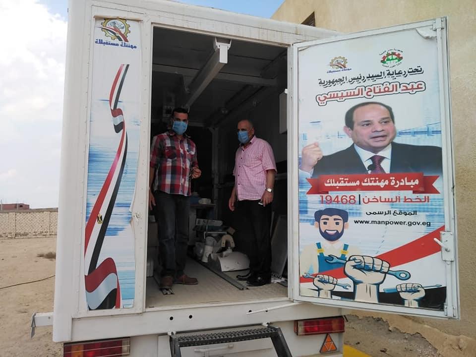 كما قاموا بالمرور على سيارة التدريب المهني بقرية الخرطوم ببدر، وذلك للوقوف على تطبيق جميع الإجراءات الاحترازية بها، والاطمئنان على خلوها من أي مخالفات وقائية وارتداء العاملين للكمامات والقفازات واستخدام المطهرات واستمرار أعمال التعقيم بصفة مستمرة للحماية من انتشار فيروس كورونا المستجد