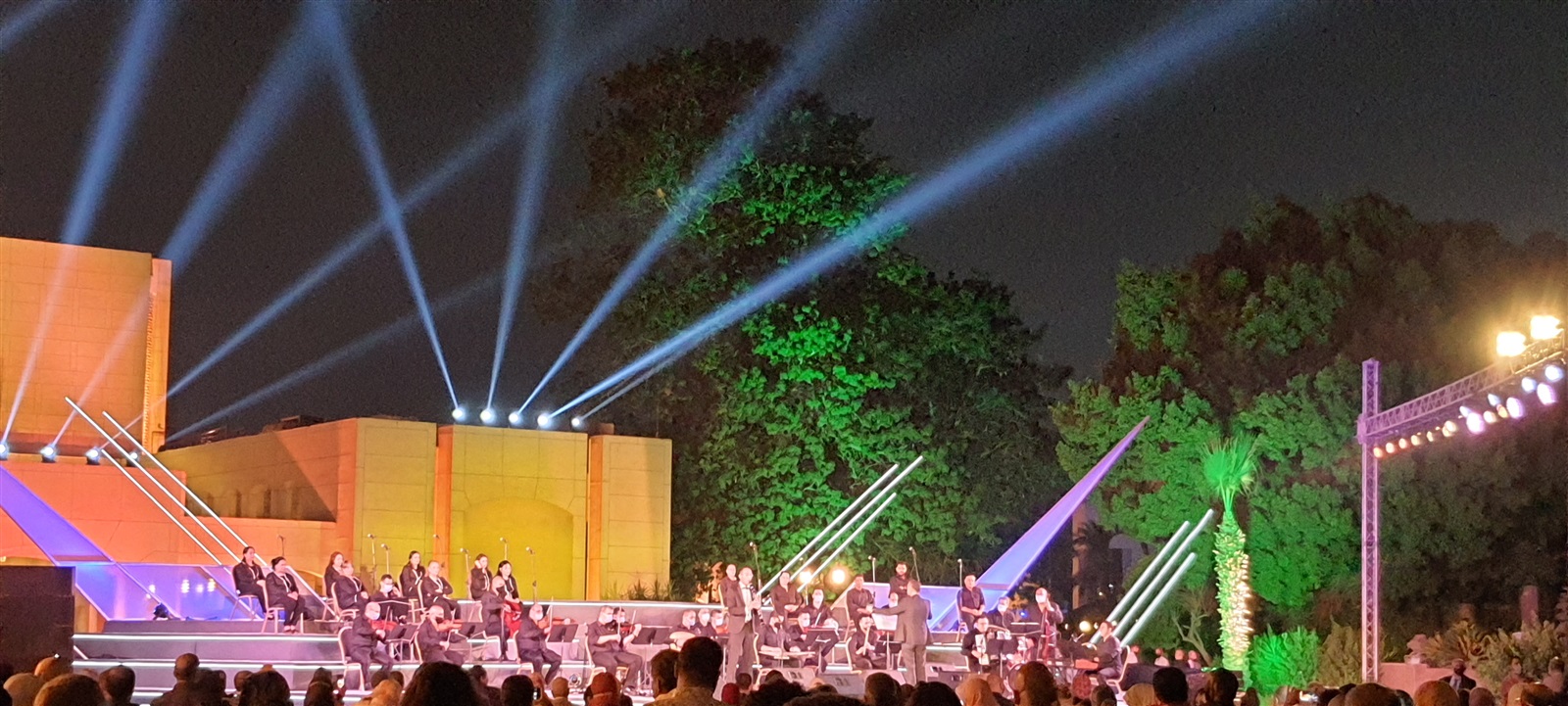 من اعتاد الذهاب إلى الأوبرا خاصة حفلاتها على المسرح الكبير يجد الأمر مختلفا اليوم ..بما يتناسب مع الظروف الحالية فأول حفل جاء وسط الهواء الطلق على مسرح النافورة الذى تم إنشاؤه بشكل احترافى لكى يستوعب الحفلات الحالية وسط إجراءات احترازية شديدة.