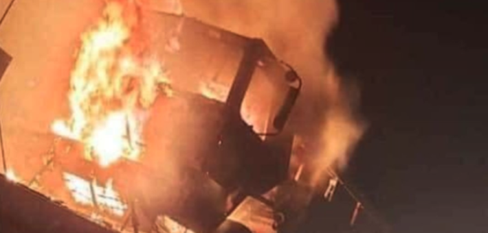 وقالت وسائل إعلام عراقية إن مسلحين يستقلون سيارات بيك آب أجبروا الناقلات التي تحمل حمولات متنوعة من بينها خمسة حاويات أثاث و3 عجلات عسكرية، على التوقف وأنزلوا سائقيها ومن ثم أضرموا النار في الناقلات، وانسحبوا لجهة مجهولة.
