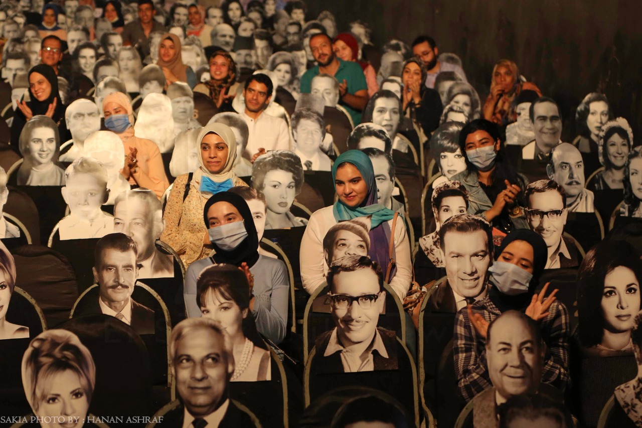 وفى هذه الظروف قررت الساقية أن تستقبل جمهورها بشكل مختلف كوسيلة لمراعاة التباعد الاجتماعى فسيجلس بجوار الحضور مجموعة منوعة من فنانى الزمن الجميل من خلال صور لهم مطبوعة على الكراسى.