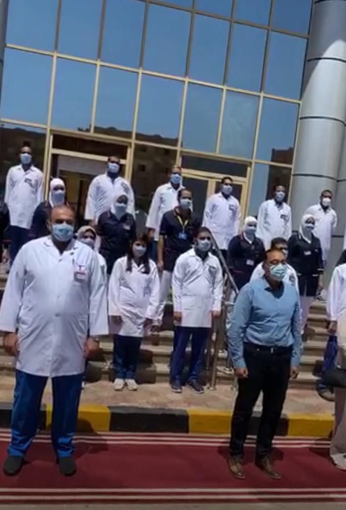 ووجه رئيس الوزراء التحية للأطباء قائلا :" اشكركم جميعا لما بذلمتوه خلال الفترة السابقة في مواجهة فيروس كورونا ، وان شاء الله الاعداد تقل وينتهي الفيروس "، والتقط مدبولي خلال الزيارة صورة تذكارية مع الطاقم الطبي بالمستشفي.