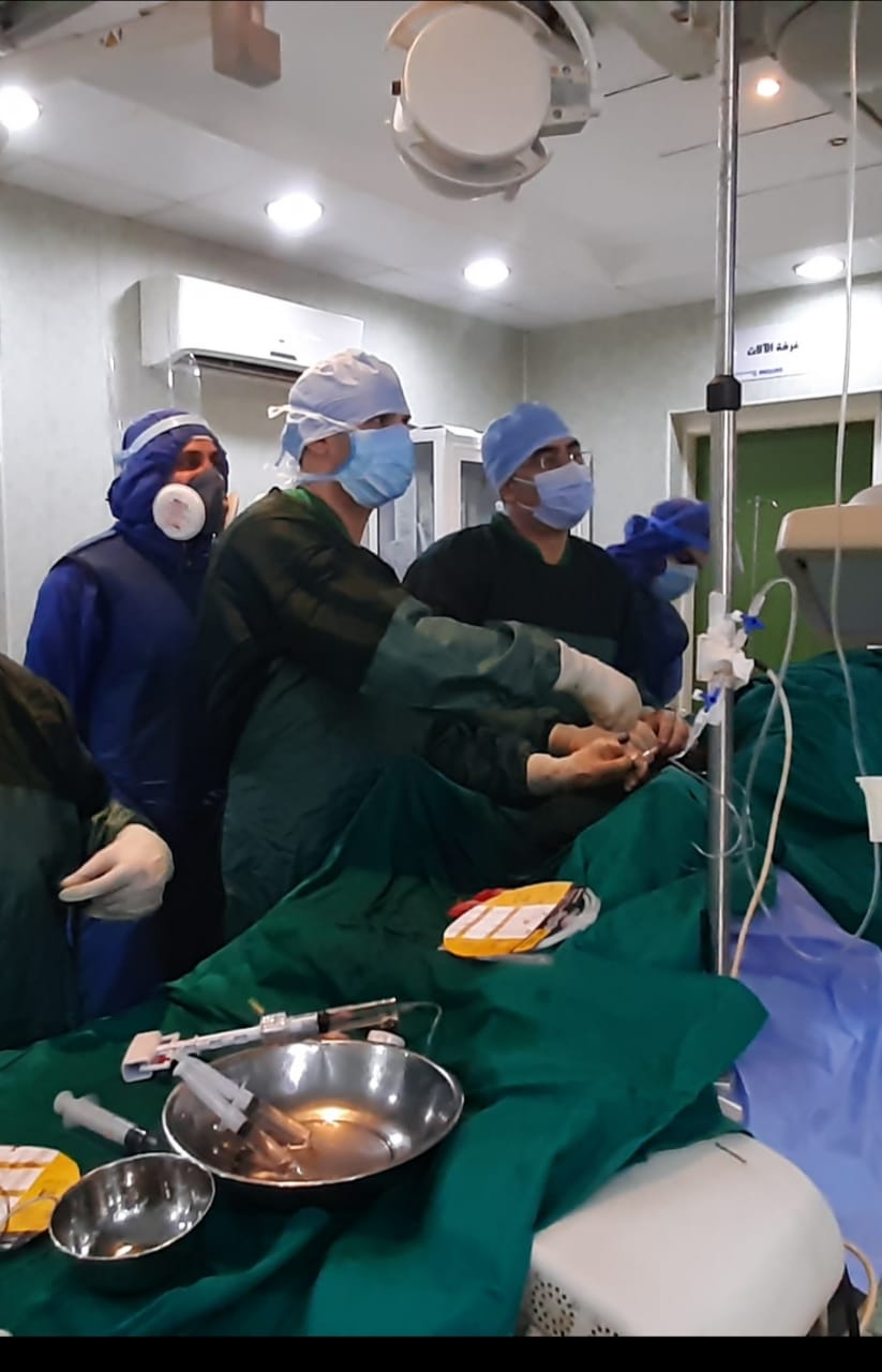 وأضاف د. وائل الدرندلى مدير مستشفى المطرية التعليمي بأن جراحى المستشفى قاموا بعدة تدخلات جراحية بمنتهى البطولة والفداء حيث تم انقاذ مريض يبلغ من العمر ٤٠ سنه يعاني من كورونا وآلام شديده بالصدر وتم تشخيص الحاله جلطه حاده بالشريان التاجي وعلي الفور تم نقله إلى قسطره القلب وتصوير الشرايين وتبين وجود انسداد كامل بالشريان الامامي الأيسر النازل وتم عمل قسطره علاجيه وتوسيع للشريان وتركيب دعامتين