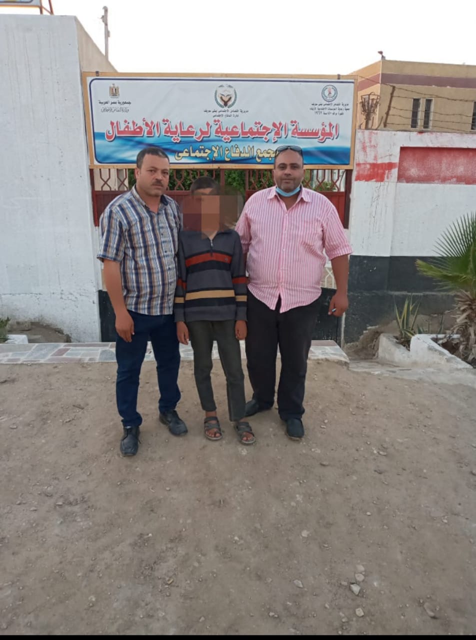 توجه الفريق لمكان تواجد الطفل وأجرى دراسة حالة له وتبين أنه يدعي ش. س. م ويبلغ من العمر ١٤ عاما ولا يوجد معه أى اوراق ثبوتية وهو من مواليد محافظة الفيوم والدته متوفية ووالده مسجون وترك المنزل لعدم وجود من يقوم برعايته.