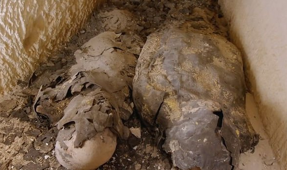 بعد عملية محيرة لإزالة ألواح من الحجر الجيري تسد القمة، ظهرت حفرة صغيرة وألقى الدكتور مارتينيز نظرة في الداخل لتعثر على مومياء، وتوصف الوضع من الداخل قائلة:" دون إزعاج لآلاف السنين وفي حالة سيئة من الحفظ لأن الماء قد تسرب إلى القبر ، كان الزوج مغطى في الأصل بورقة ذهبية وهي رفاهية محفوظة فقط لأعلى أعضاء النخبة في المجتمع، مما يعني أنهم ربما تفاعلوا شخصيا مع كليوباترا."