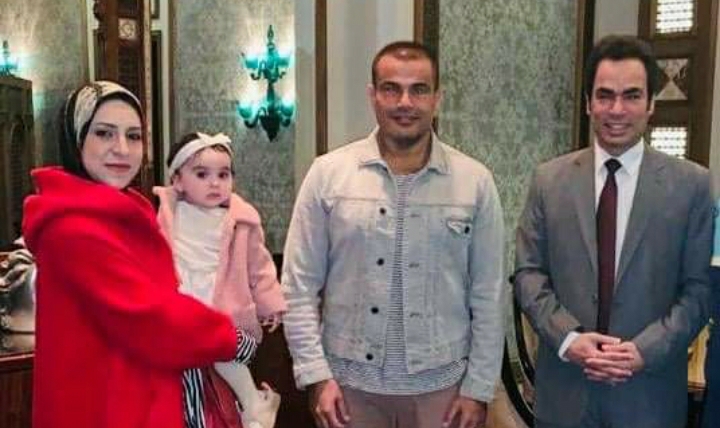 نشر الإعلامى أحمد المسلماني صورة مع زوجتة وابنته والفنان عمرو دياب من خلال حسابه الشخصى عبر موقع التواصل الاجتماعى "فيسبوك".