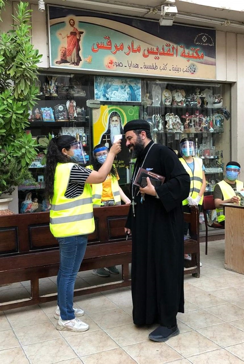 وتبدأ هذه الإجراءات الاحترازية من باب الكنيسة حيث يتم قياس درجة حرارة الشخص قبل دخول الكنيسة وإذا وجد أن هناك ارتفاع في درجة الحرارة يتم تأجيل حضور القداس لحين تحسن حالته الصحية ولا يسمح بدخول أي شخص إلي الكنائس دون وجود أسمة في قائمة المصلين وكانت الكنائس قد فتحت باب تسجيل أسماء الراغبين في صلوات القداسات من حوالي أسبوعين لإعطاء فرصة للجميع لنوال بركة حضور القداسات