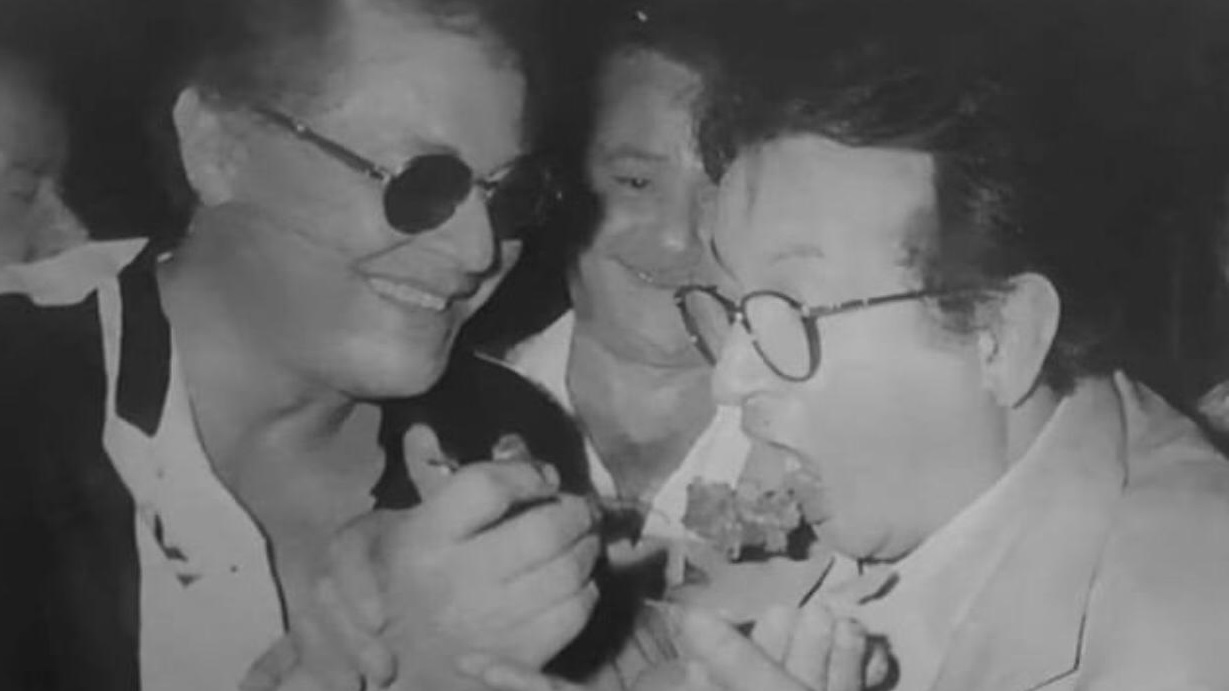 ظهر فى الصورة الفنان محمود عبد العزيز, يطعم الفنان نور الشريف.