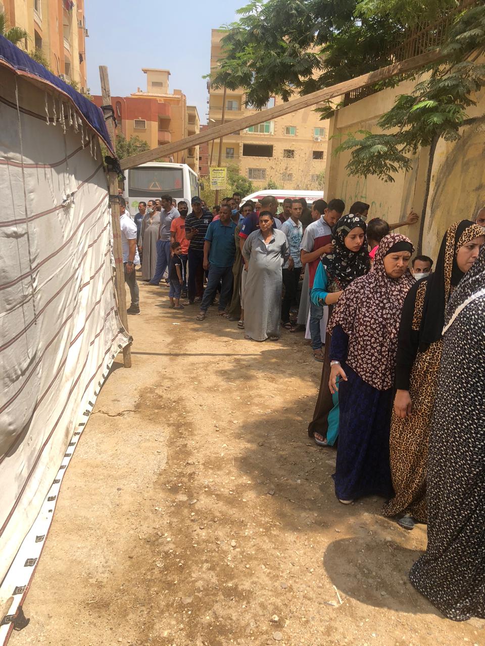 توافد أعدادالناخبين من السيدات والرجال كبار السن على لجان مدرسة الصفا والمروةبمنطقة فيصل،واصطفوا في طابورللمشاركة فى انتخابات مجلس الشيوخ 2020.