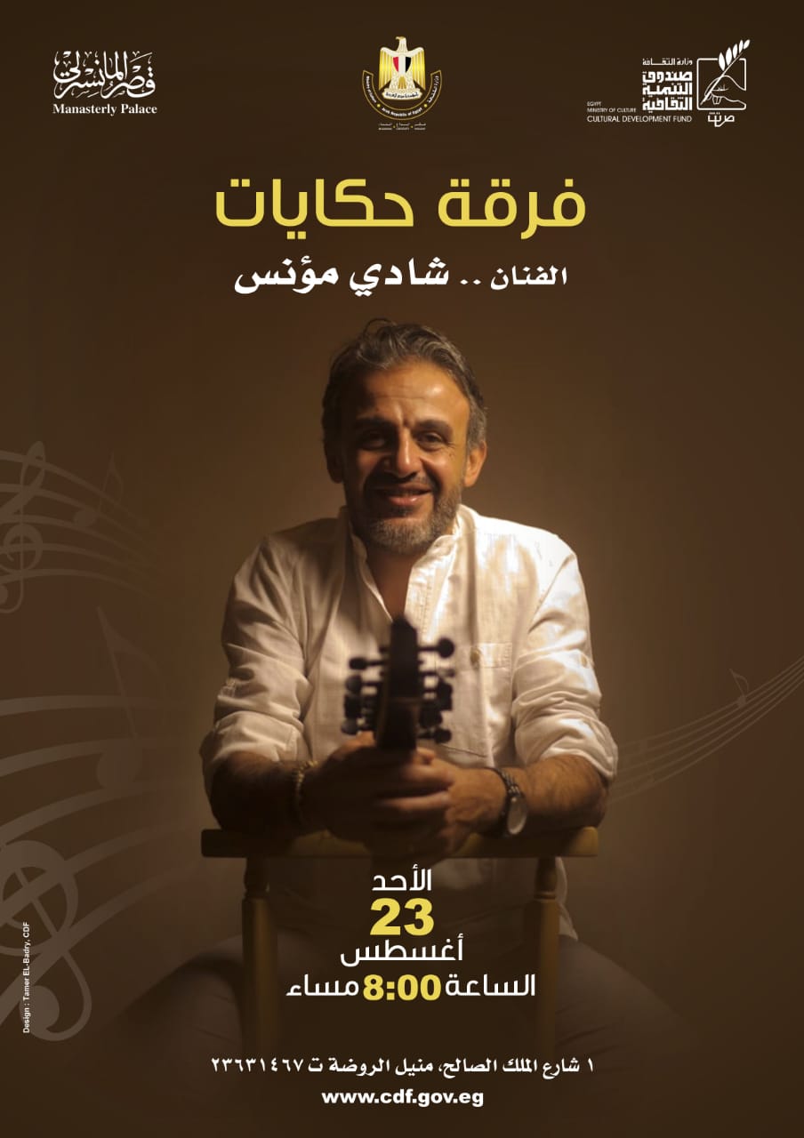يستقبل مسرح الحديقة الصيفي بقصر المانسترلي بالمنيل-التابع لقطاع صندوق التنمية الثقافية- في الثامنة مساء الأحد 23 أغسطس، الحفل الفنى للفنان شادي مؤنس وفرقته "حكايات"، والتى تُقدم الموسيقي المصرية بشكل ورؤية معاصرة.