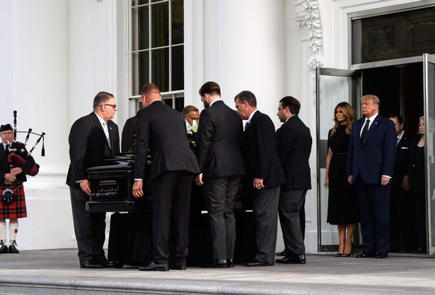 خيم الحزن على الرئيس الأمريكي والسيدة الأولى ميلانيا ترامب عندما كانا يشاهدان نعش روبرت وهو ينقل من الرواق الشمالي للبيت الأبيض ونزولًا على الدرج إلى جلسة بعد ظهر يوم الجمعة.