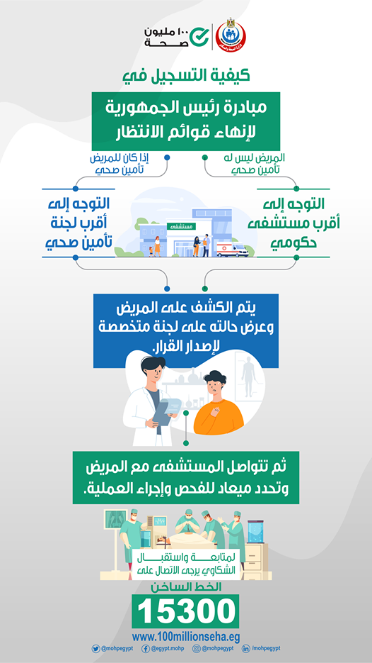 ثم تتواصل المستشفى مع المريض وتحديد ميعاد للفحص وإجراء العملية.