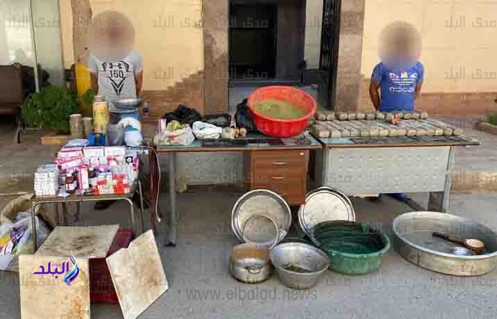 وعقب تقنين الإجراءات بالتنسيق مع قطاع الأمن العام مديرية أمن السويس تم ضبط إثنين من المتهمين حال تواجدهما بدائرة القسم ، وبحيازتهما (438 طربة لمخدر الحشيش وكمية من ذات المخدر مخلوطة بمواد أخرى معدة للكبس والتغليف .. وزنت جميعها 53,800 كيلو جرام) و (كمية من بودرة وأعواد نبات البانجو المخدر وزنت جميعها 12 كيلو جرام) و (108) زجاجة وكيس لأدوية وزيوت وعقاقير مخدرة ومؤثرة مختلفة و (كمية من الأعشاب "بردقوش – لبان – حناء" مجهولة المصدر وزنت جميعها 10 كيلو جرام و (أدوات التصنيع "مكبس – إسطمبة حديدية – غطاء حديدية أوانى معدنية وبلاستيكية تستخدم فى التصنيع") و (مبلغ مالى – 2 هاتف محمول – 2 ميزان).