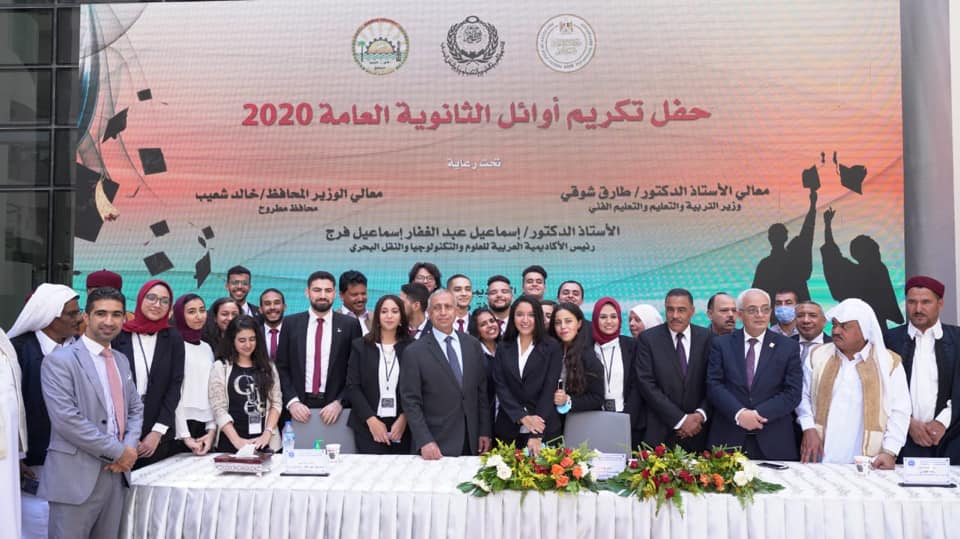 استضاف فرع الاكاديمية العربية للعلوم والتكنولوجيا والنقل البحري بمدينة العلمين الجديدة اليوم الثلاثاء احتفالية تكريم اوائل الثانوية العامة لعام 2020، وذلك بحضور اللواء خالد شعيب محافظ مطروح، والدكتور رضا حجازي نائب وزير التربية والتعليم لشئون المعلمين، والدكتور اسماعيل عبد الغفار فرج، رئيس الاكاديمية العربية للعلوم والتكنولوجيا والنقل البحري.