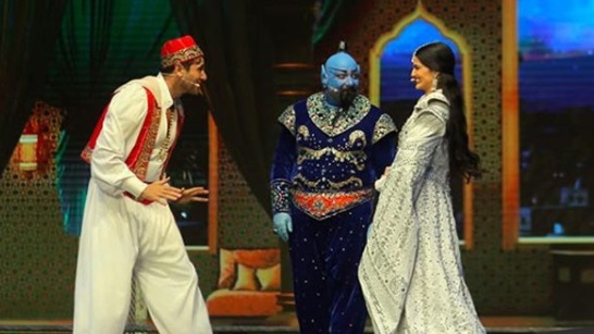 وظهر محمد ثروت فى الصورة من مسرحية علاء الدين برفقة النجم أحمد عز .