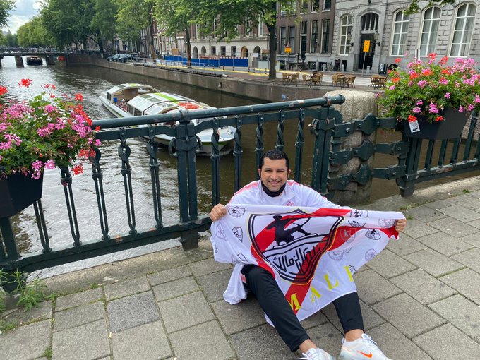 ويظهر في الصورة وهو يحمل علم نادي الزمالك, وحرص نجم الزمالك السابق علي دعم الفريق بعد رحيل المدير الفني الفرنسي باتريس كارتيرون عن تدريب الفريق الاول للكرة بالنادي.