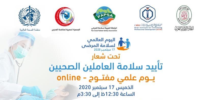 تحت رعاية اتحاد الأطباء العرب، نظم المعهد العربي للتنمية المستدامة (معتمد) بمشاركة الرابطة العربية لسلامة المرضى، وحضور بارز من منظمة الصحة العالمية، يوم علمي مفتوح عبر تقنية "زووم"، تحت شعار "تأييد سلامة العاملين الصحيين".