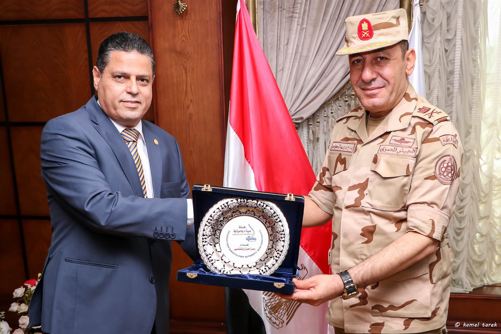 استقبل اللواء بحرى وليد عوض رئيس مجلس إدارة هيئة ميناء دمياط ، اللواء إمرى عبد الرحمن رئيس مجلس إدارة شركة النيل الوطنية للنقل النهرى واللواء مصطفى صميدة نائب رئيس مجلس إدارة الشركة فى زيارة تهدف إلى بحث تطوير التعاون بين الجانبين ،ودراسة كيفية تعظيم دور الشركة فى نقل مختلف أنواع البضائع بواسطة وحداتها عبر المحطة النهرية بميناء دمياط وذلك بحضور نائب رئيس مجلس إدارة هيئة الميناء للتشغيل وعدد من قيادات الهيئة ومديرو العموم.