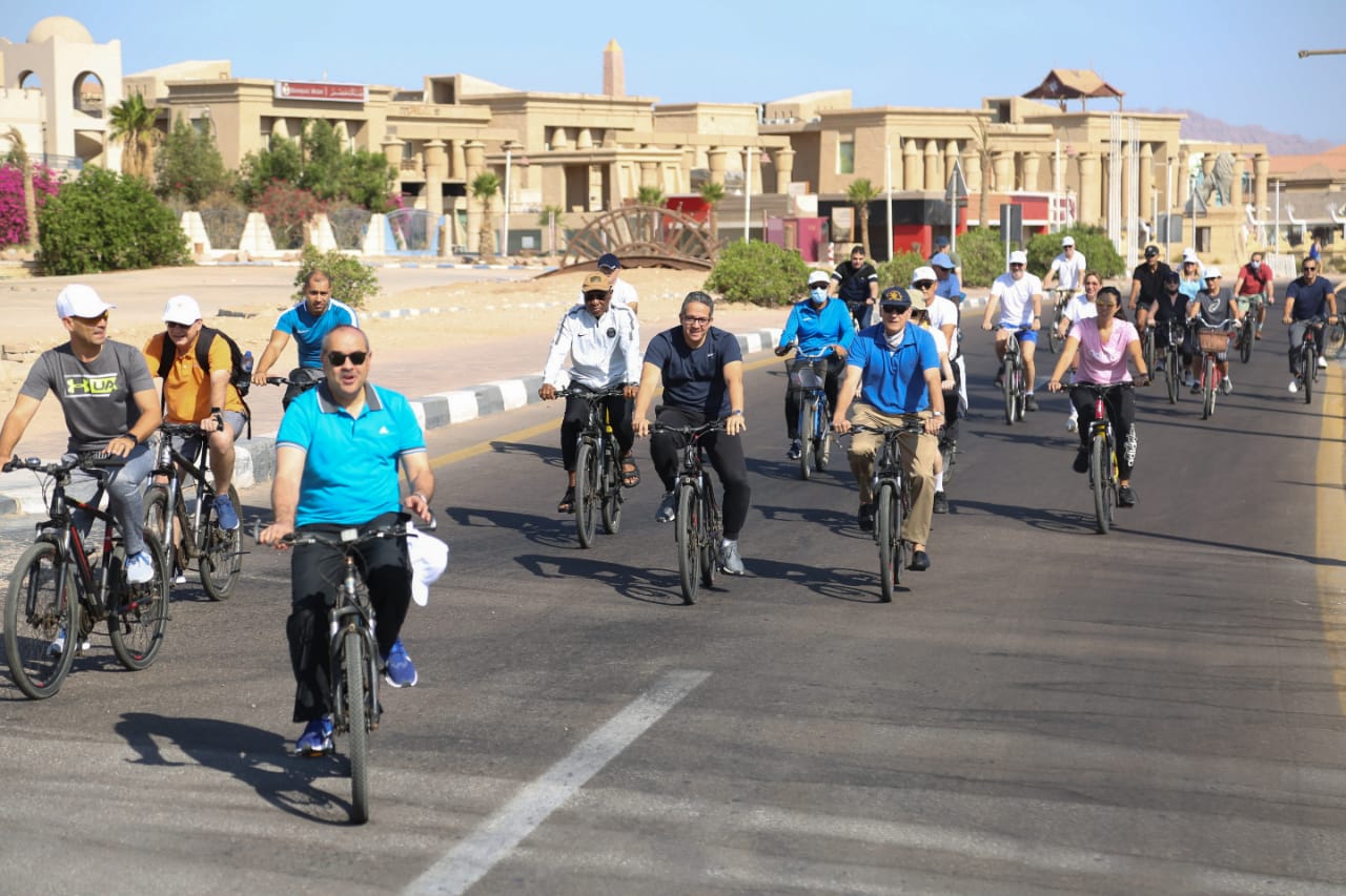 شارك الدكتور خالد العناني وزير السياحة والآثار، والطيار محمد منار وزير الطيران المدني، ٣٠ سفيرا من سفراء الدول الأجنبية في مصر في ماراثون للدراجات الهوائية والتي نظمته وزارة السياحة والآثار اليوم الجمعة بمدينة شرم الشيخ للأحتفال بيوم السياحة العالمي.