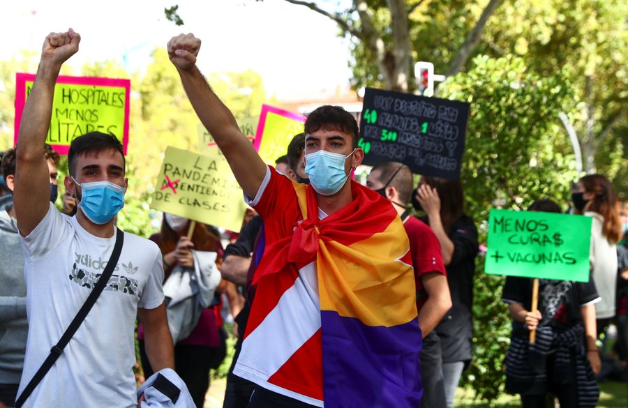 شهدت العاصمة الاسبانية مدريد، تظاهرات وذلك احتجاجا على الإغلاق الجزئي، الذي شمل العديد من الأحياء في اسبانيا، بسبب تفشي فيروس كورونا المستجد "كوفيد-19".