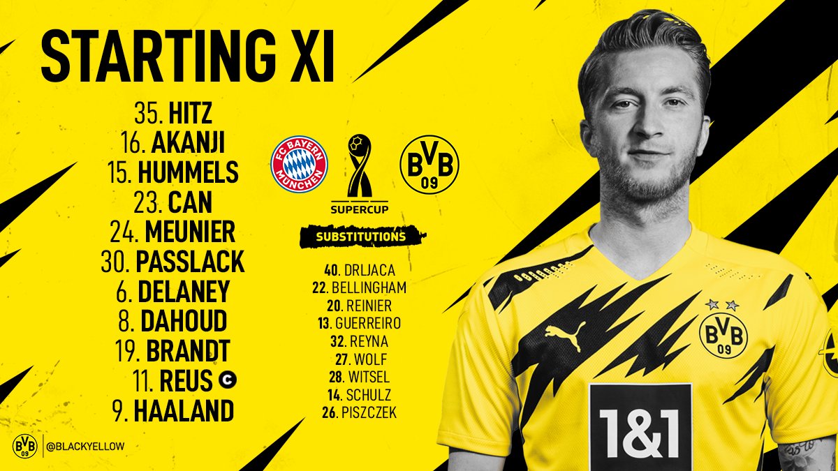 أعلن هانز فليك، المدير الفني لفريق بايرن ميونخ الألماني، ولوسيان فافر مدرب بوروسيا دورتموند، التشكيل الأساسى الذى يخوض الكلاسيكو النارى المقرر إقامته في الثامنة والنصف من مساء اليوم الأربعاء، على ملعب "اليانز آرينا"، في كأس السوبر الألماني.