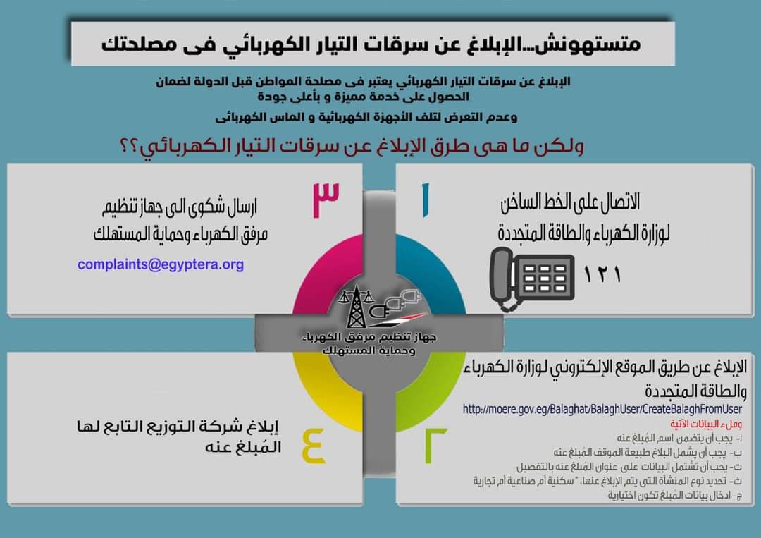 يعتبر الإبلاغ عن سرقات التيار الكهربائي فى مصلحة المواطن قبل الدولة لضمان الحصول على خدمة مميزة وبأعلى جودة وعدم التعرض لتلف الأجهزة الكهربائية والماس الكهربائى.
