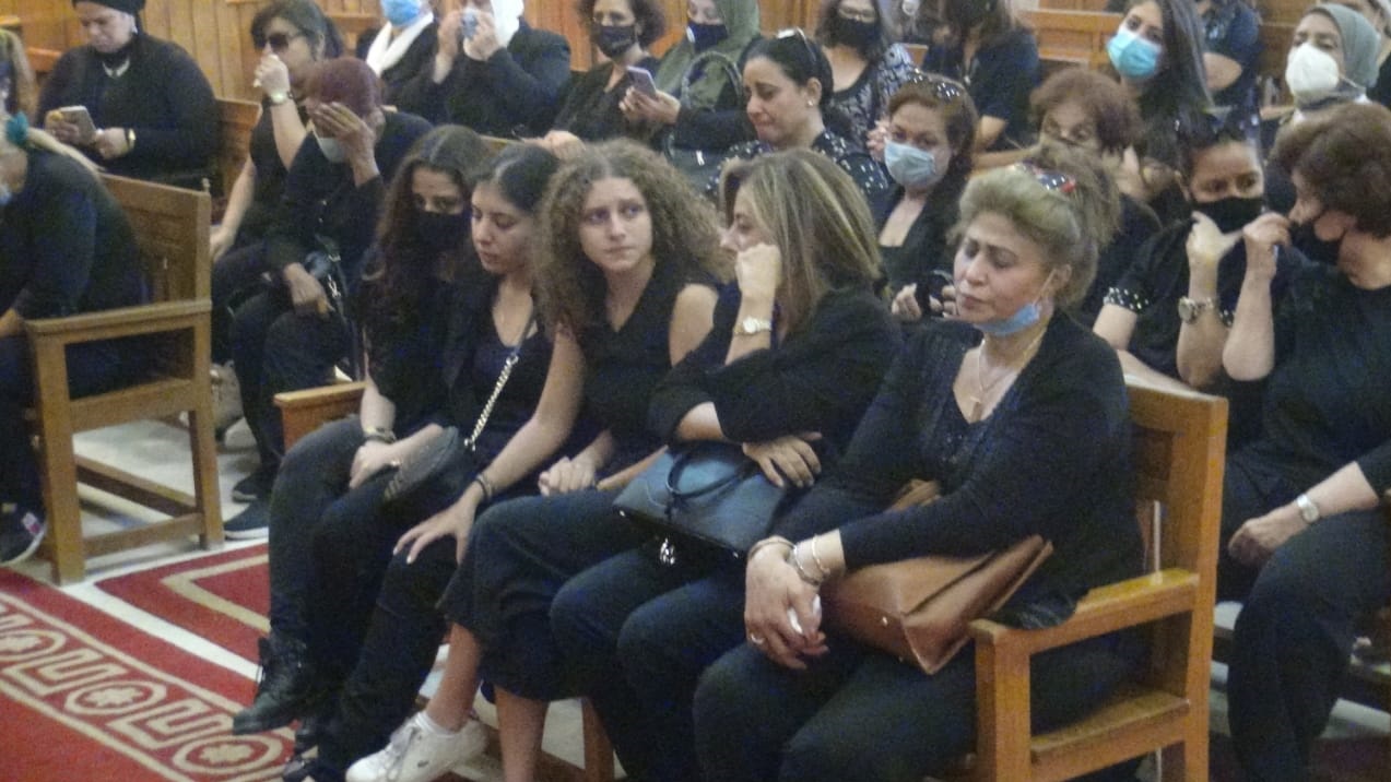 انهار أهل وأقارب النائبة الراحلة منى منير أثناء تشييع جثمانها من كنيسة المرعشلى بالزمالك بالبكاء .