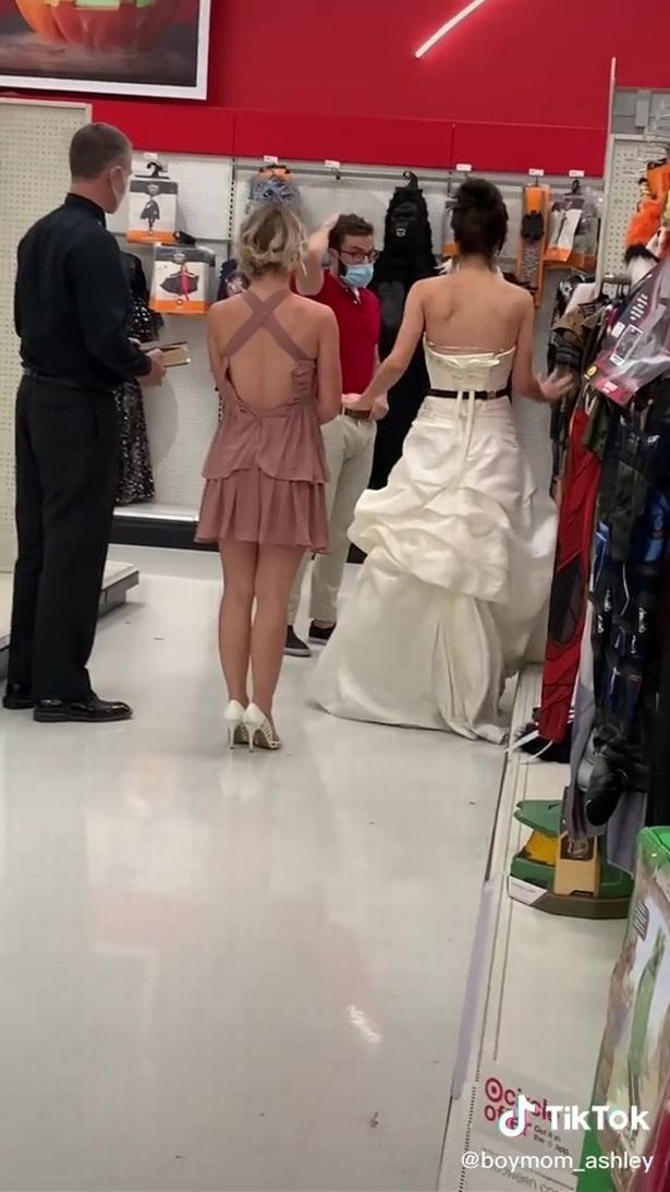 وفوجئ العمال في المول الذي كان يعمل فيه خطيب الشابة بأن هناك فتاة تتجول في المول بفستان زفاف تبحث عن الشاب و بجانبها قس و صديقتها المقربة و باقة من الزهور بيدها.